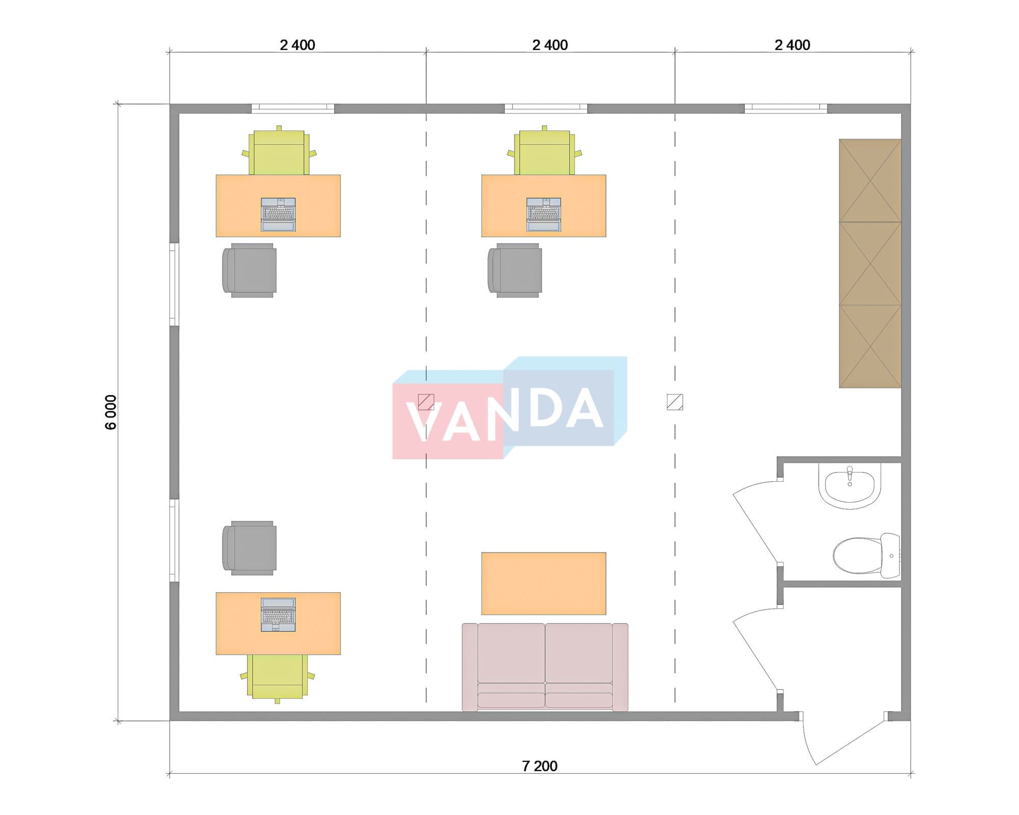 Модульная бытовка с плоской крышей 7.2x6.0 7.2x6.0 43.2 OSB 9 мм. Оцинкованный профлист 650 000 р. Уточняйте у менеджера