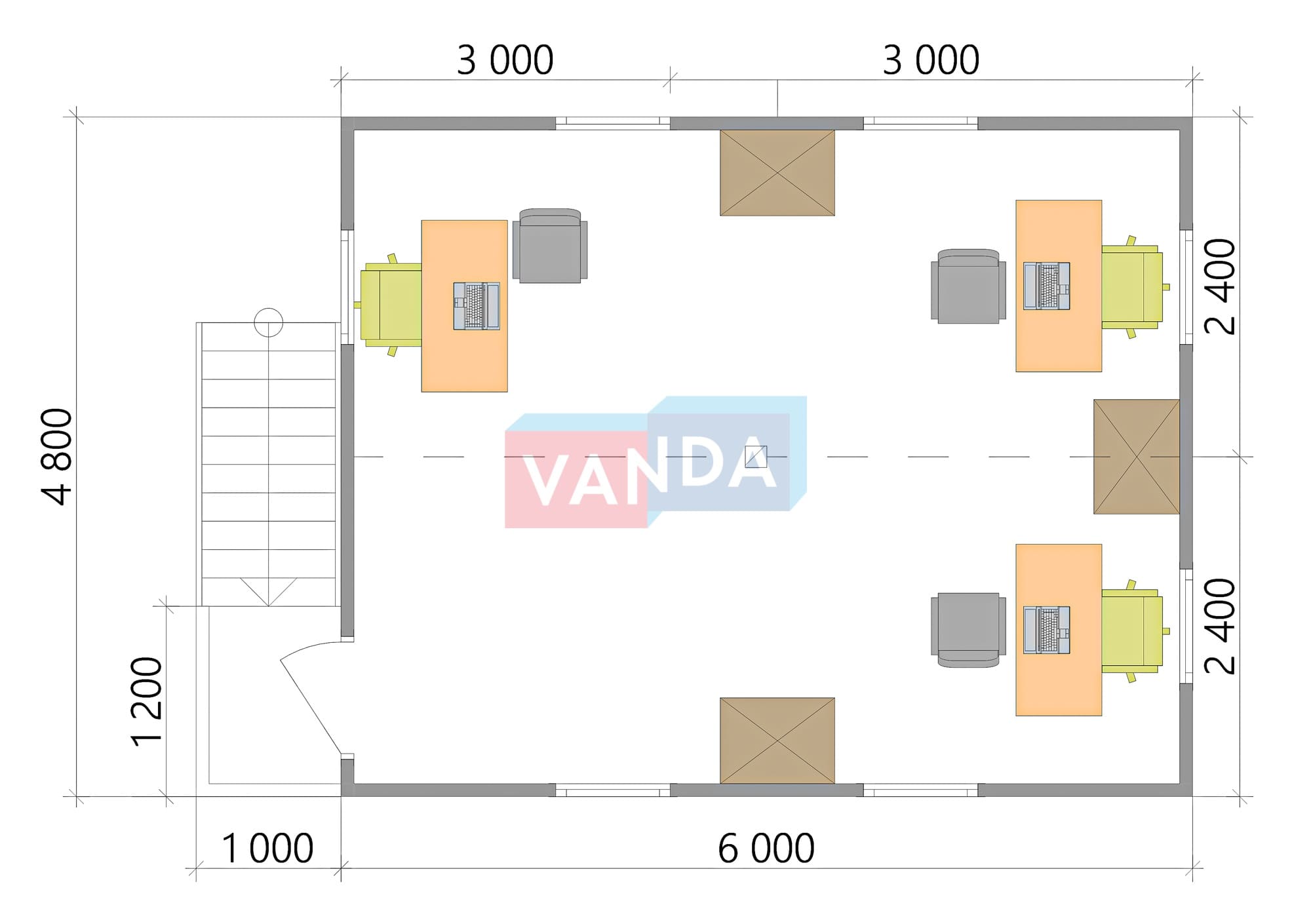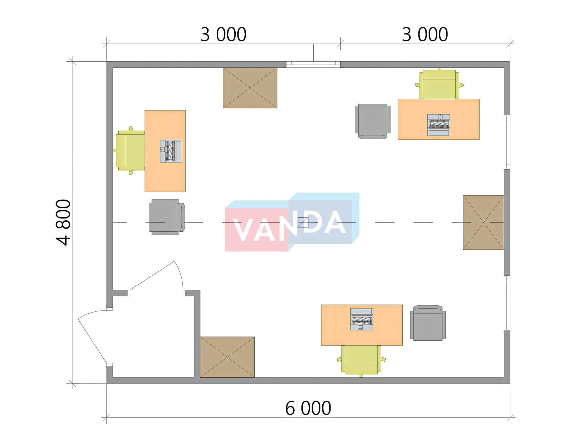 Модульная бытовка с плоской крышей 4.8х6.0 4.8х6.0 28.8 OSB 9 мм. Оцинкованный профлист 500 000 р. Уточняйте у менеджера